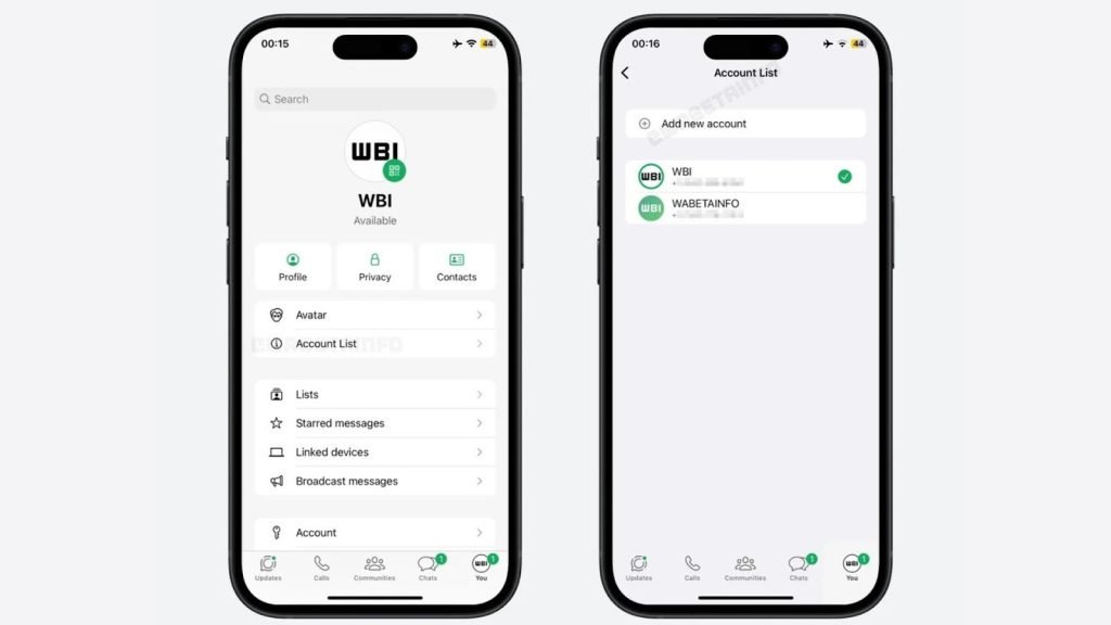 You can switch accounts from the Settings page. WhatsApp displays both accounts so you can choose which one to use.