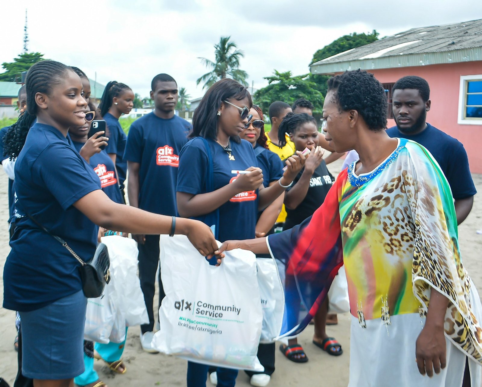 A member of the ALX Nigeria community giving out food items to a community member in Amadi Village, Rivers State as part of their recent community service initiative across Nigeria.
