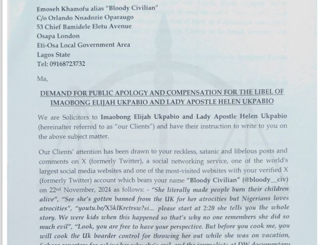 The founder of Liberty Foundation Gospel Ministries is taking legal action against a singer known as ...