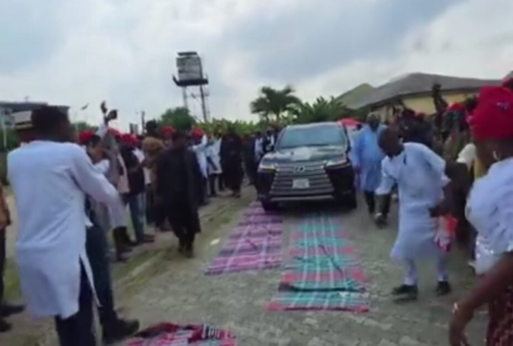 Women in Rivers State on Saturday laid their wrappers on the road for the convoy of ...