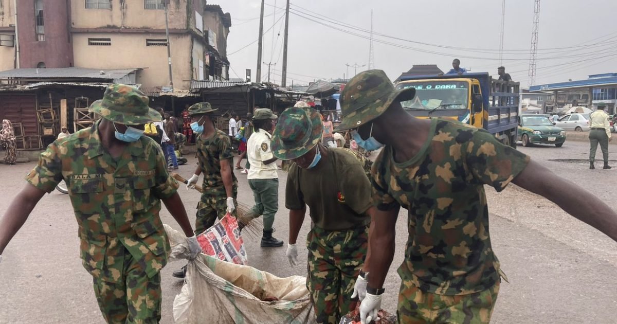 Cholera outbreak: Soldiers clean Ogun market, clear drainage