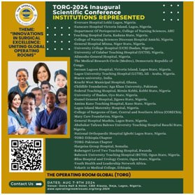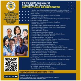 Introducing the esteemed institutions participating in the Operating Room Global (TORG) 2024 Inaugural Scientific Conference, 7-9th August 2024! Their involvement promises enriching insights and groundbreaking discussions. Join us in Lagos, Nigeria, to connect with and learn from the best in the field.