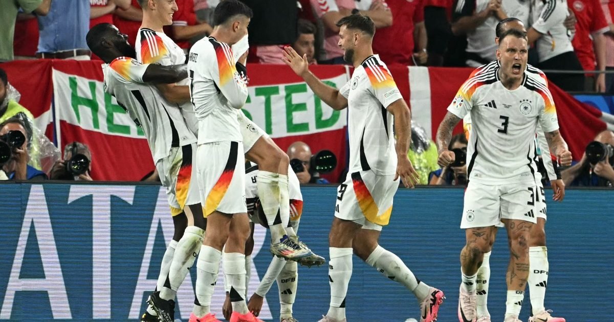 A Kai Havertz penalty and a Jamal Musiala strike gave Germany a 2-0 win over Denmark as the host nation reached the Euro 2024 quarter-finals after a dramatic game that was delayed by almost half an hour in the first half due to a violent storm.