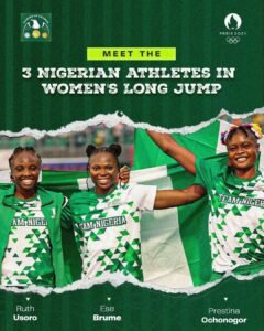 Three Nigerian track and field athletes, Ese Brume, Ruth Usoro, and Prestina Ochonogor, have made history by qualifying for the final of the women’s long jump at the ongoing Summer Olympics in Paris. This marks the first time three Nigerian women have reached this stage in the event.