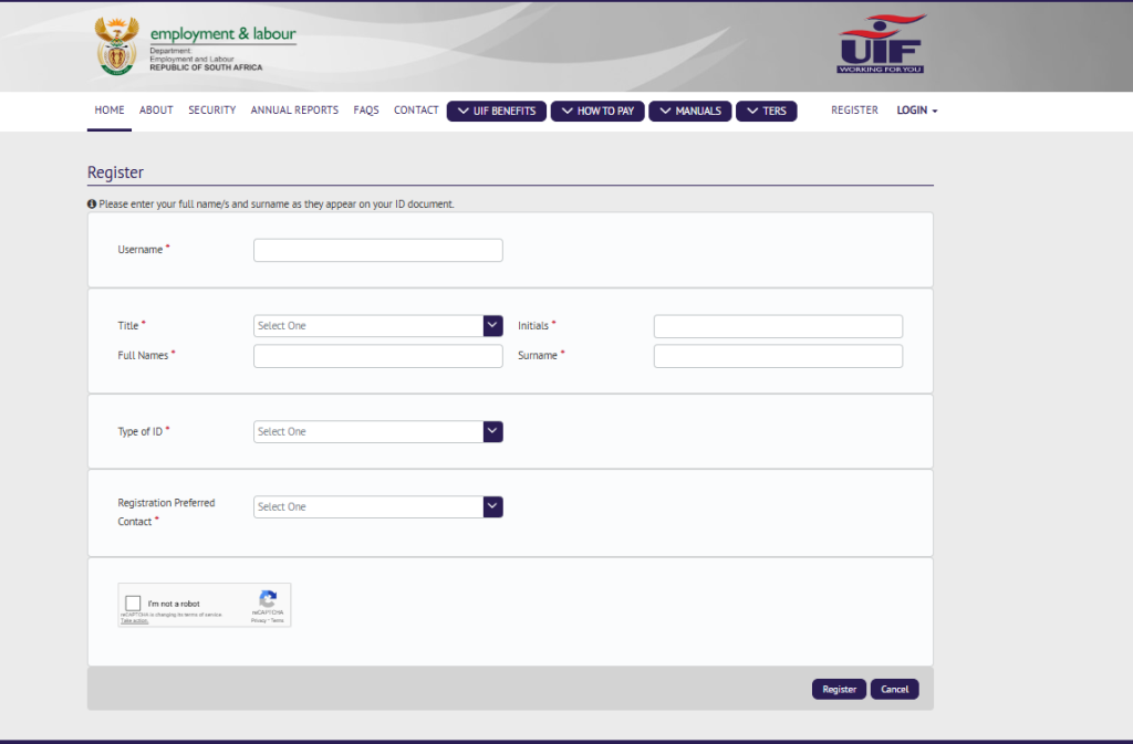 Step 1: Visit the official portal at ufiling.labour.gov.za.
