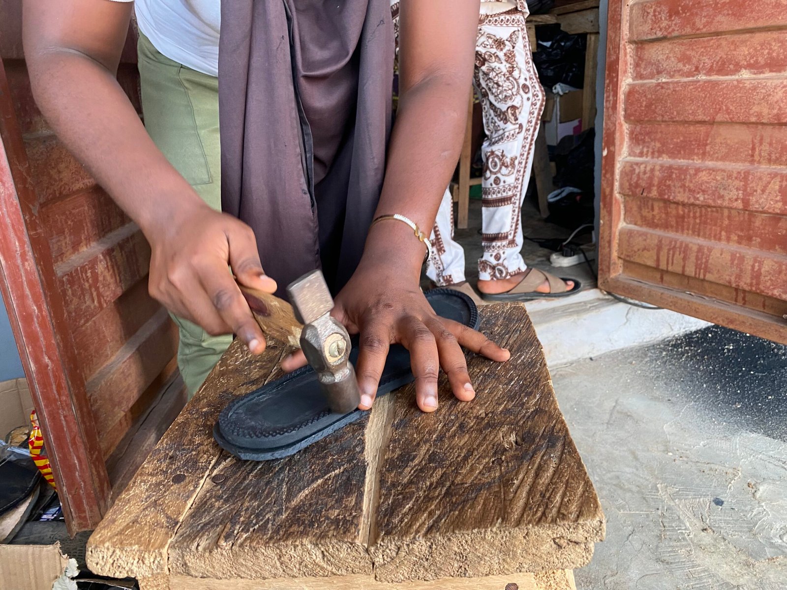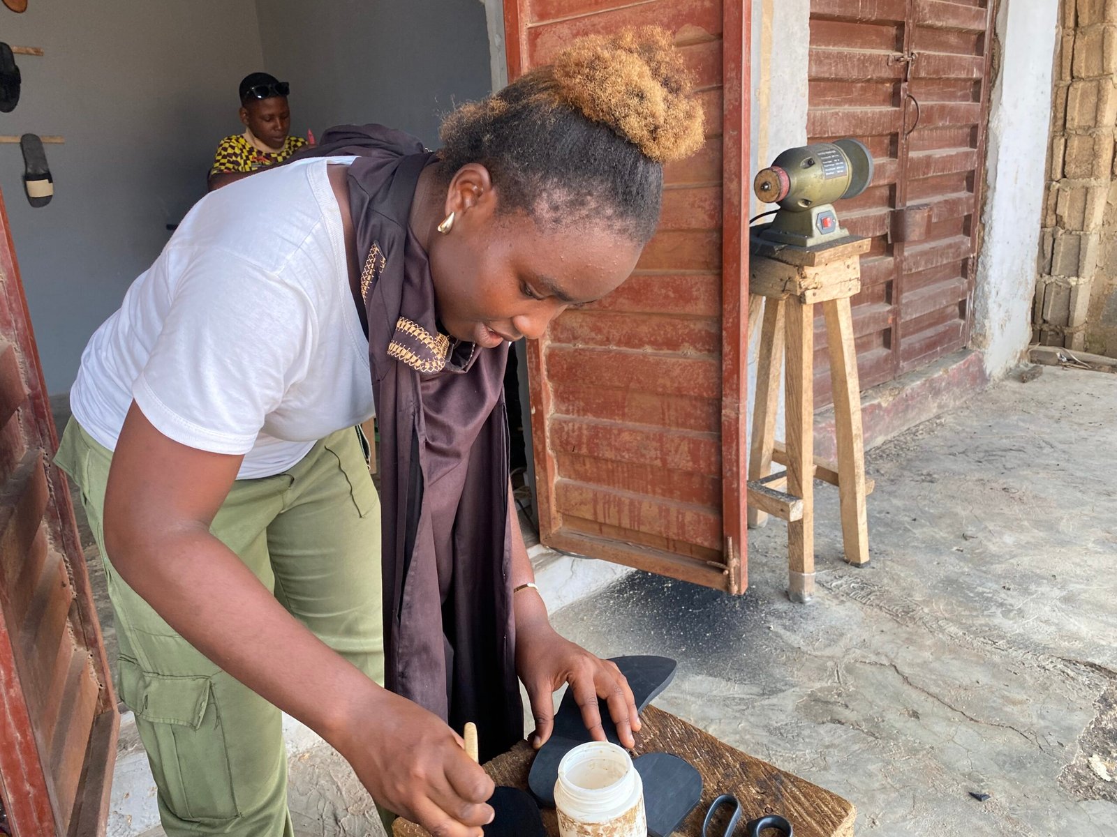 When she spoke to Alfa, the man producing the slippers, he didn’t take her seriously at first, saying she was a woman and many students had come with similar intentions but never followed through. Determined, she asked him how much it would cost to train and, fearing to bother her mom due to past failed learning experiences, paid with her monthly allowance. Every day, after her classes, she would go to Alfa’s place where he taught her under a tree.