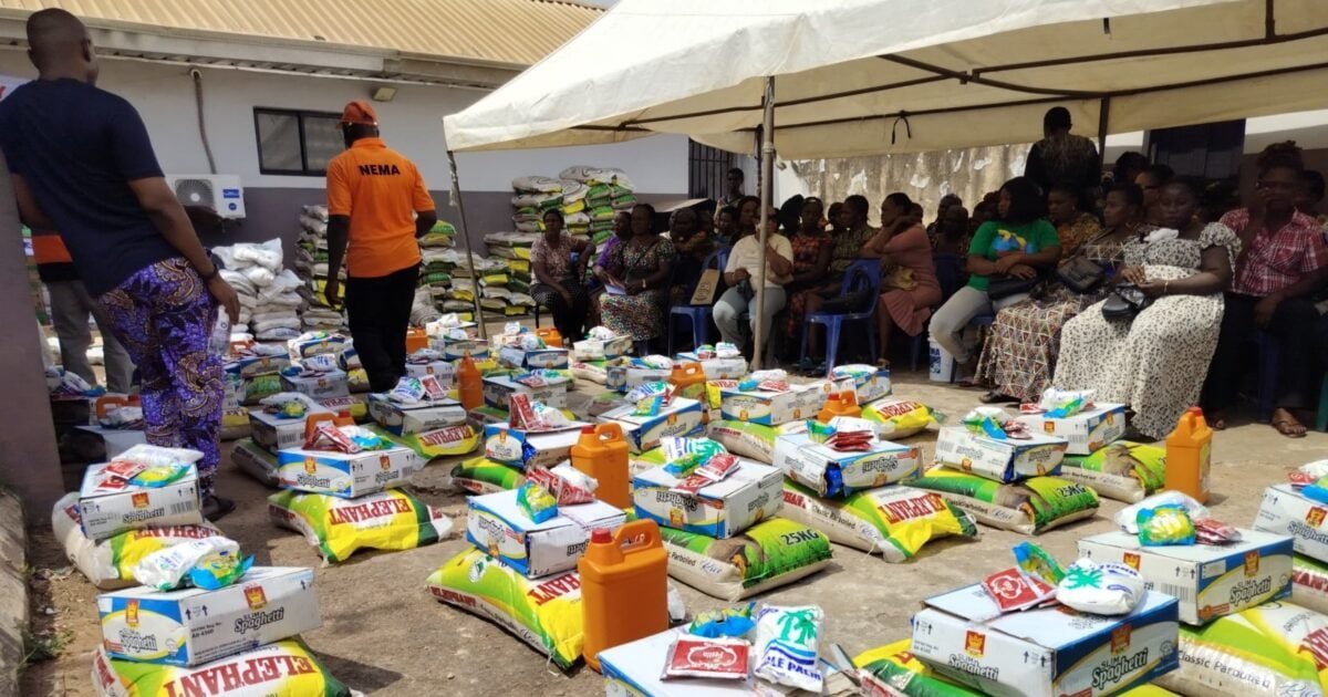 The materials distributed included 300 bags of 25kg rice, 300 bags of 25kg maize, and 150 cartons of spaghetti.
