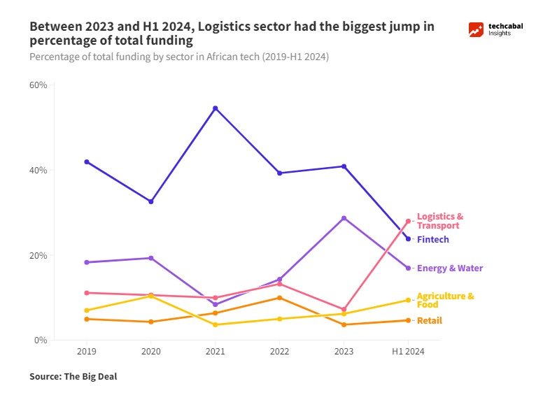 The share of logistics funding in the last five years. Chart by Seun Joseph, TC Insights