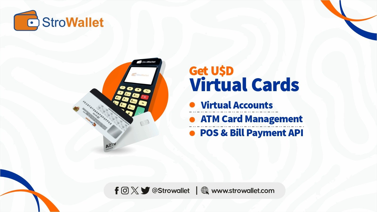 StroWallet lets your customers pay you directly. Access USD Virtual Cards, Virtual Accounts, ATM Cards, POS terminals, and Bill Payment APIs to manage your finances and grow your business with ease.
