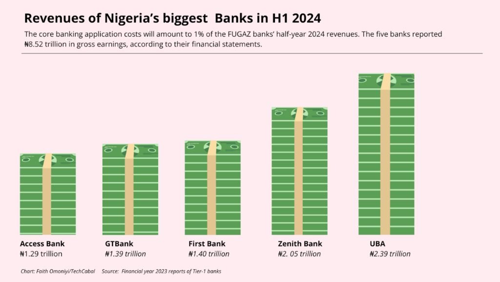 For instance, Guaranty Trust Bank completed its switch to the Finacle core banking platform, incurring significant costs estimated at up to ₦25 billion ($15.3 million) annually in license fees. It is estimated that Nigerian commercial banks collectively spend at least $10 million each year on their core banking applications, with the top five banks potentially reaching $50 million annually.