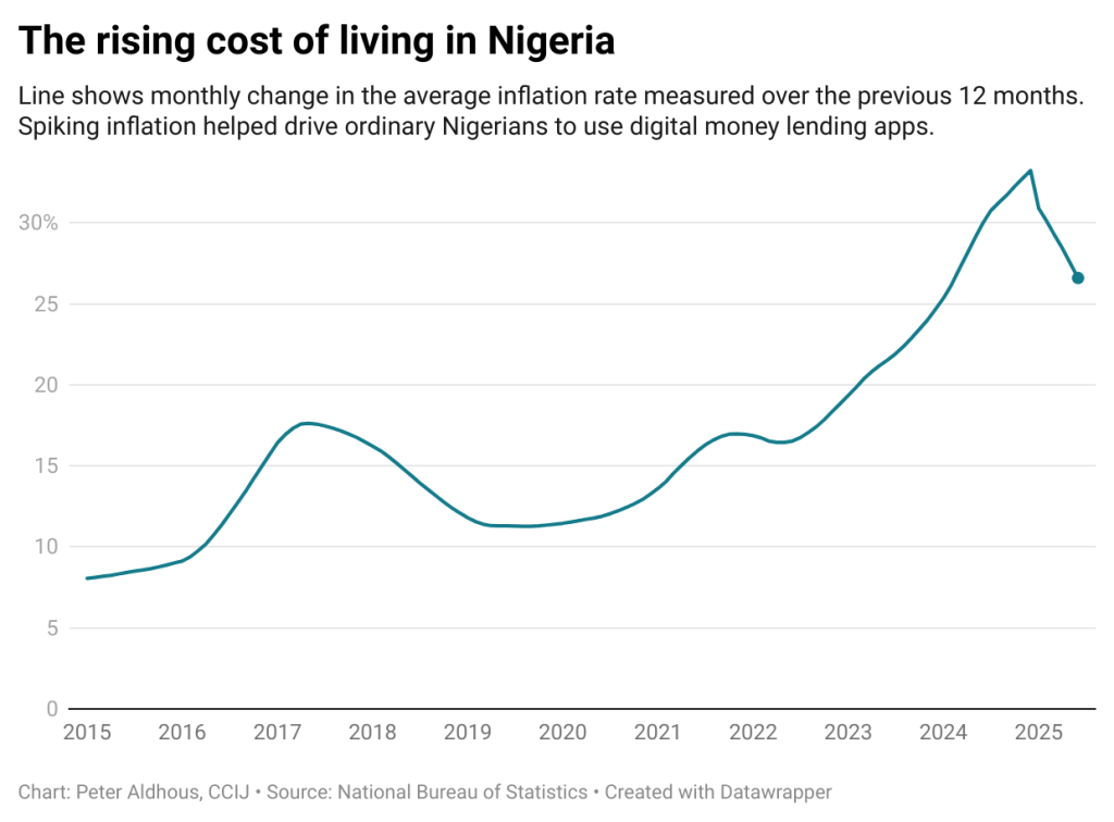 In the past five years, rising inflation and cost of living have significantly contributed to the increased popularity of digital lending. By late 2024, Nigeria’s inflation crisis had pushed more households into debt. Food inflation soared to 40%. Nearly three out of every four goods and services registered price increases.