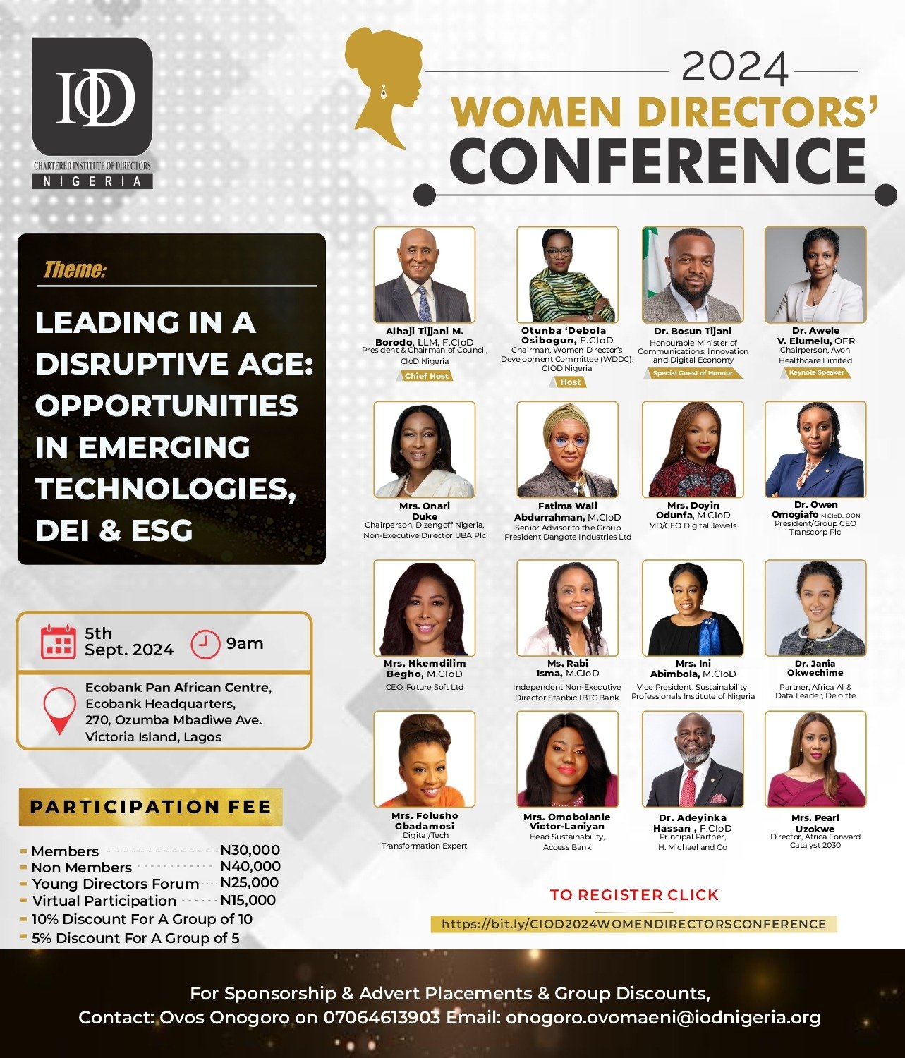 The Women Directors’ Development Committee (WDDC) of the Chartered Institute of Directors Nigeria is thrilled to announce the upcoming 2024 edition of the Women Directors’ Conference.