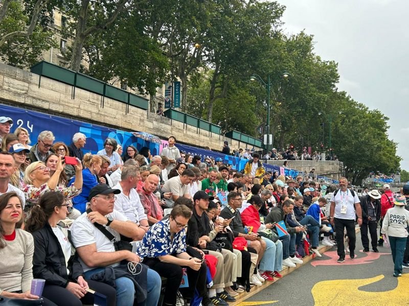 Up to 500,000 people are watching in person from specially built stands, where tickets have sold for up to 2,700 euros ($2,900), on the river banks for free, and from the overlooking balconies and apartments, AFP reports.