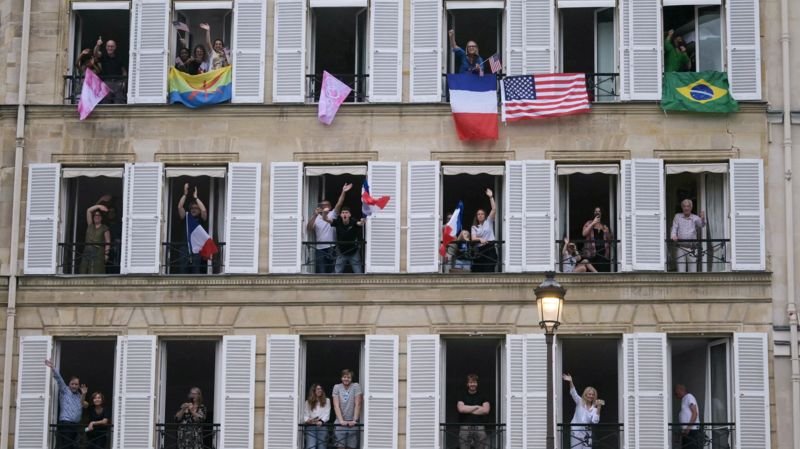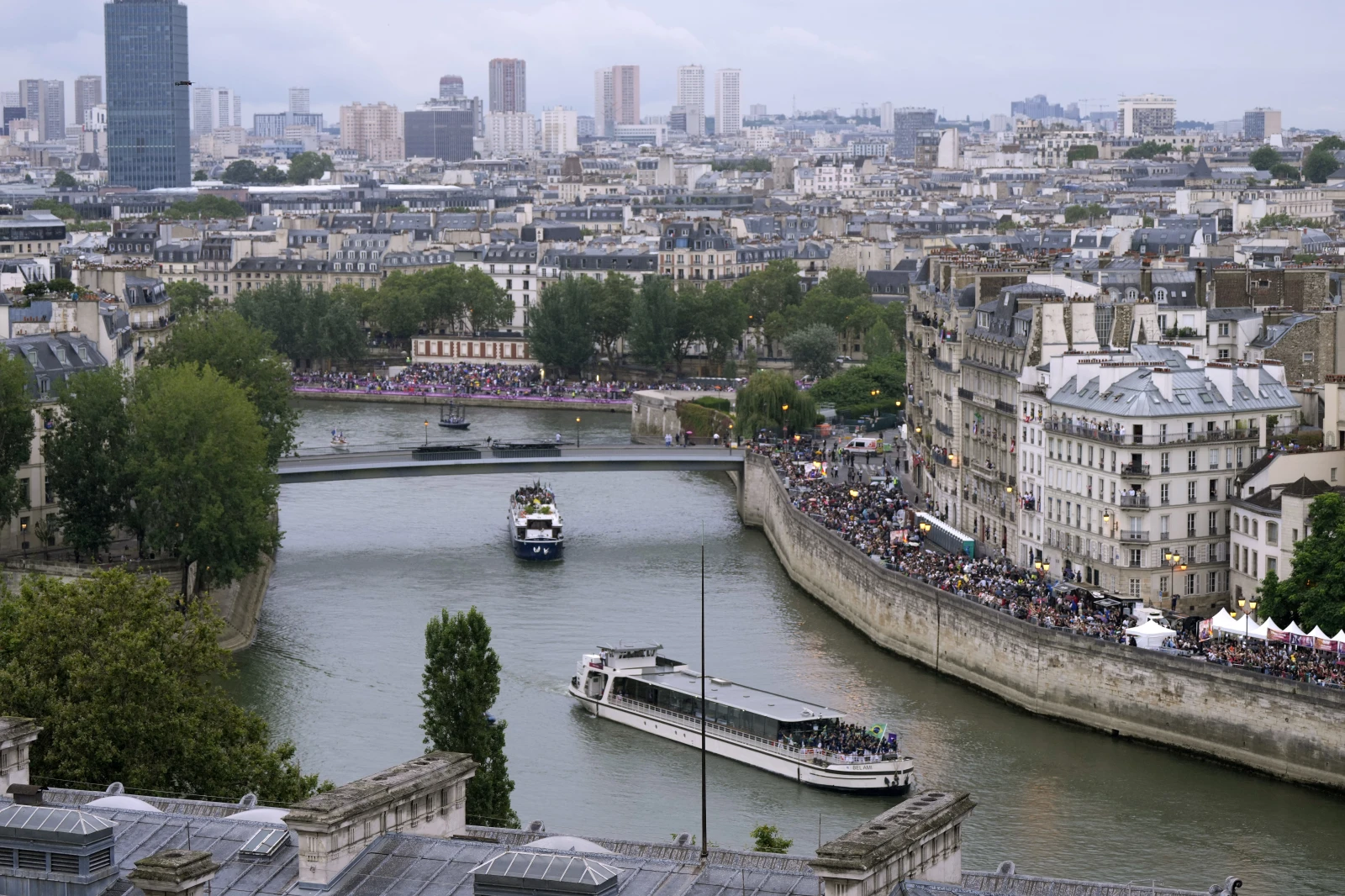 Up to 500,000 people are watching in person from specially built stands, where tickets have sold for up to 2,700 euros ($2,900), on the river banks for free, and from the overlooking balconies and apartments, AFP reports.