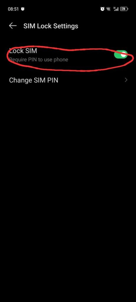 - Toggle the switch next to SIM PIN to the ‘On’ position.