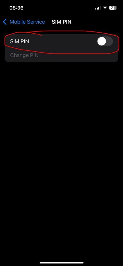 - Scroll to the bottom of the Mobile service and tap on SIM PIN.