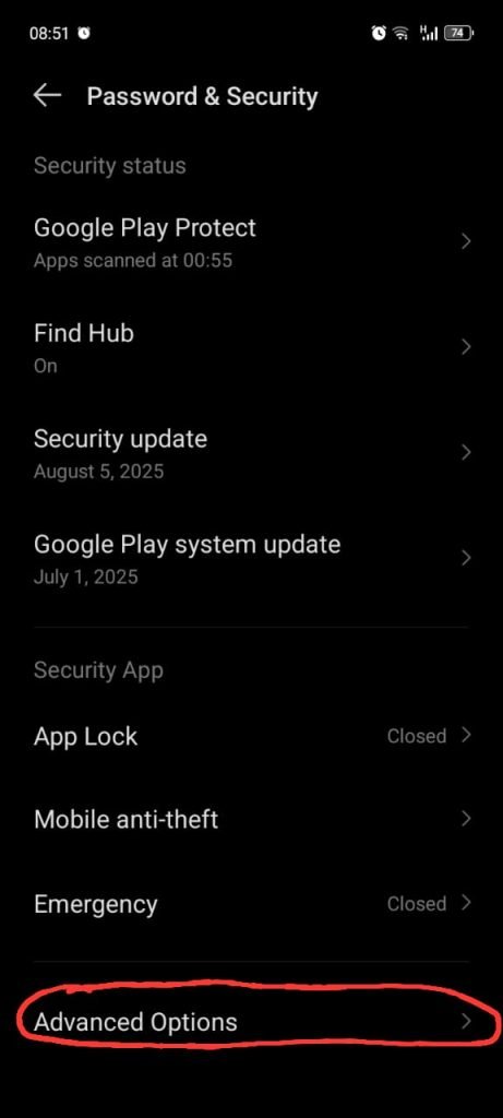 - Look for a section labelled Security, Privacy, Biometrics and Security, or Security and Location.