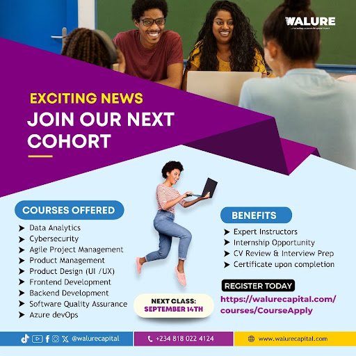 Increase your steeze with a tech skill. Join our next cohort starting soon. Sign up now at www.walurecapital.com/courses/CourseApply.