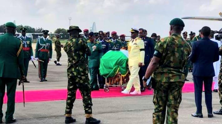 The late Chief of Army Staff, Lt Gen Taoreed Lagbaja’s remains have been brought to Abuja for his final burial.