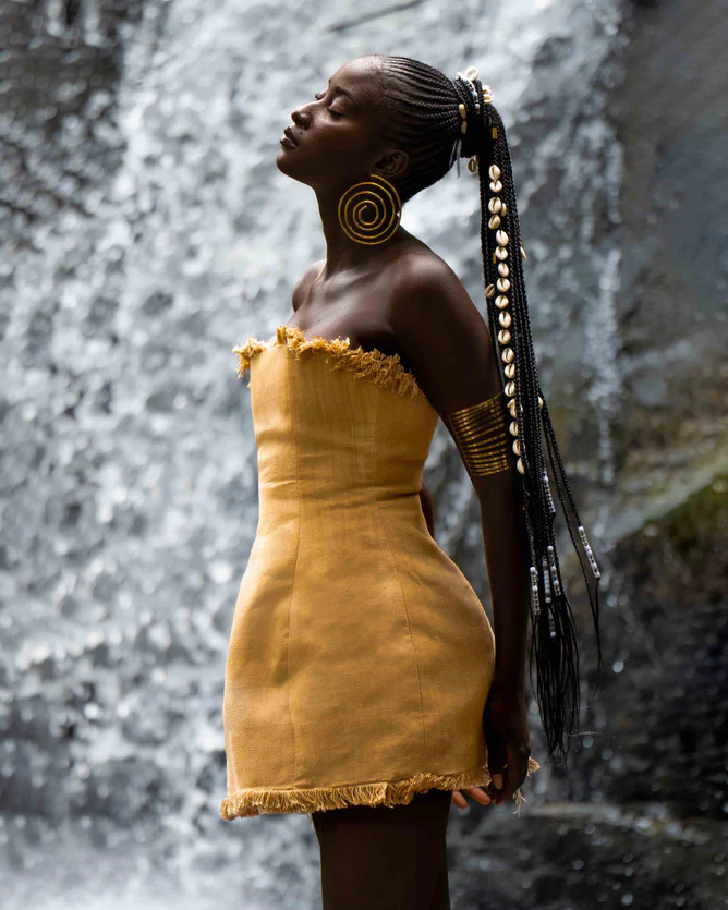 Whether each clothing item is made of raffia, dye, cotton, or shells, the craftsmanship behind every Kílẹ̀ńtàr piece journeys through West Africa: from Burkina Faso to Côté d’Ivoire, to Senegal, and Nigeria.