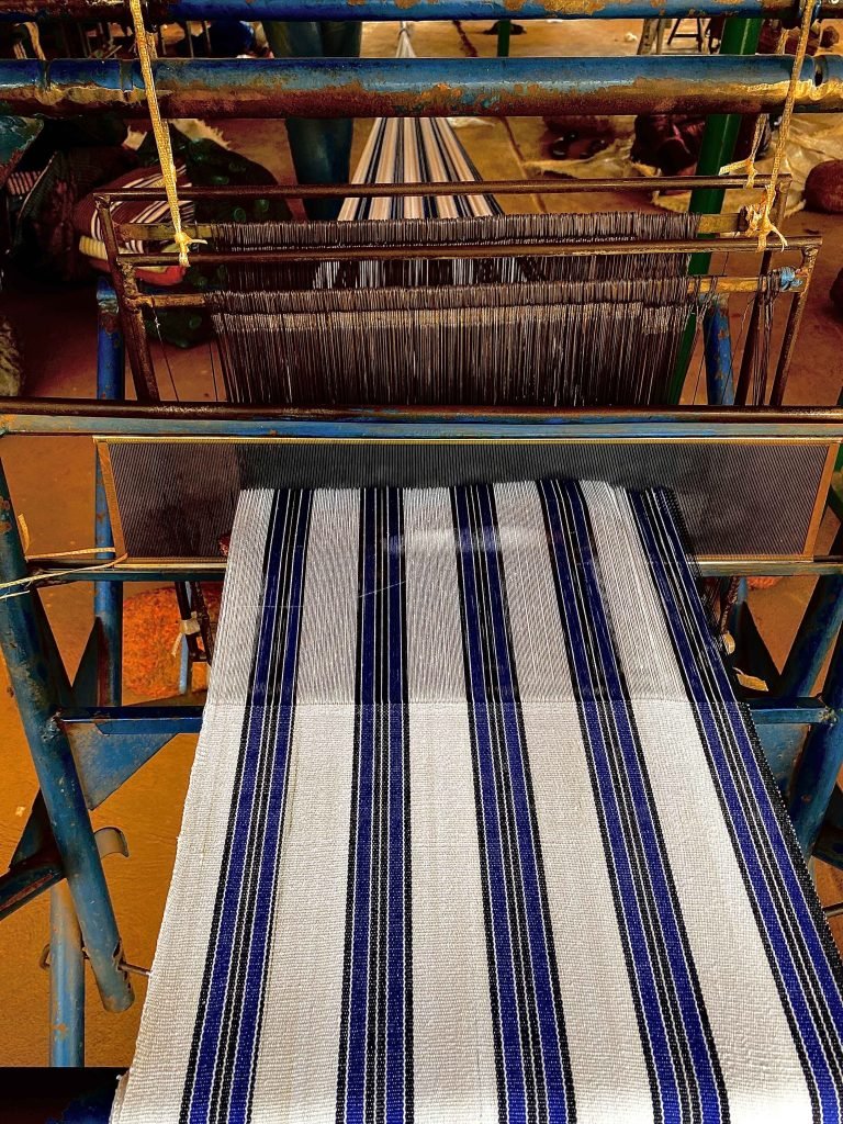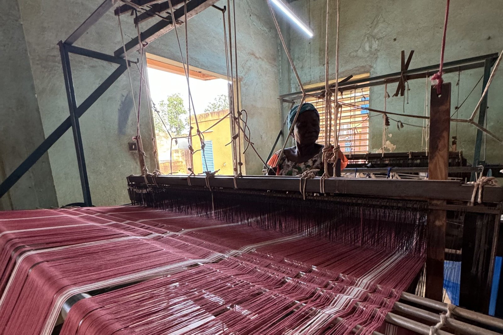 The coloured threads are then prepared on a loom to be woven into fabrics. The process leans strongly on the craftsmanship of local artisans, especially those in Burkina Faso and Nigeria.